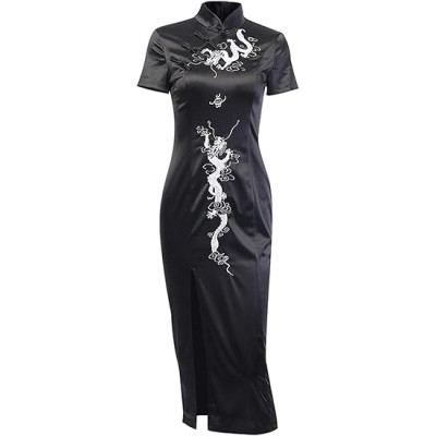 Cheongsam Dress for Women - Gothic Asian Long Maxi Dress with Dragon Print