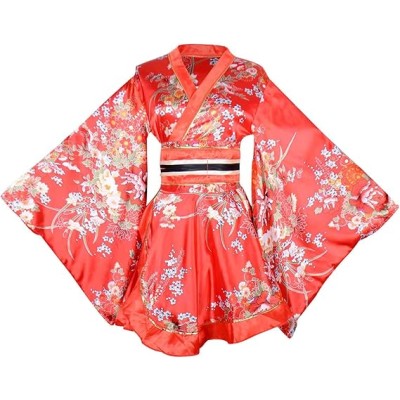 Kimono Costume Adult Japanese Geisha Floral Patten Gown Blossom Bathrobe Sleepwear With Obi Belt