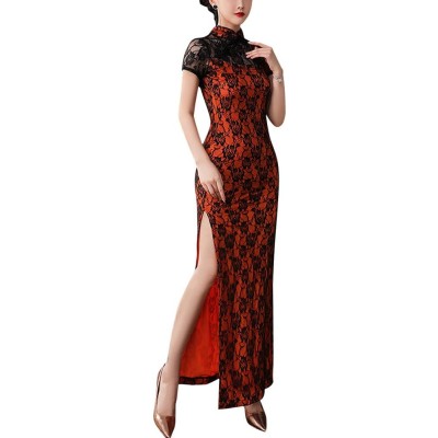 Womens Chinese Traditional Short Sleeve Qipao Long Cheongsam Dress