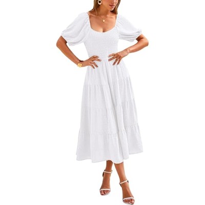 Women's Summer Flowy Maxi Dress Casual Cap Sleeve V Neck Smocked Beach Sundress