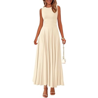 Womens Spring Dresses 2025 Casual Sleeveless Crewneck Aline Maxi Dress Stretch Tank Flowy Long Dresses