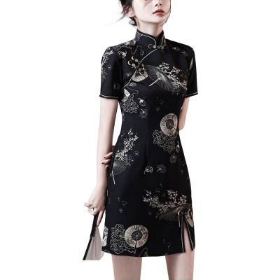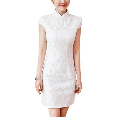Women's Cheongsam Mandarin Collar Chinese Traditional Side Slit Cocktail Dress Mini Bodycon Costume