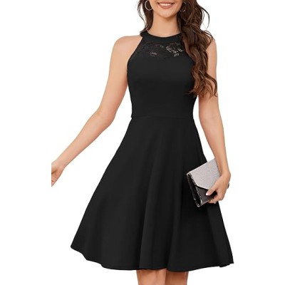 Women Cocktail Prom Wedding Dress Halter Lace Evening Party Short Vintage Homecoming Dresses