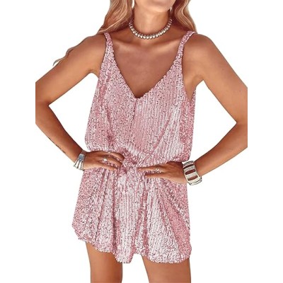 Women's Glitter Sequin Dress Spaghetti Strap V Neck Party Cocktail Sparkly Mini Dress Clubwear