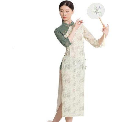 Chinese Qipao Dress for Women Cheongsam Dress Mandarin Collar Chinese Dresses Traditional Clothes Green
