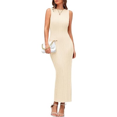 Women's 2025 Summer Casual Maxi Dresses Ribbed Knit Sleeveless Bodycon Elegant Going Out Beach Vacation Clothes