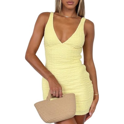 Women's Summer Bodycon Dresses Sexy V Neck Sleeveless Backless Vacation Going Out Party Club Mini Dress