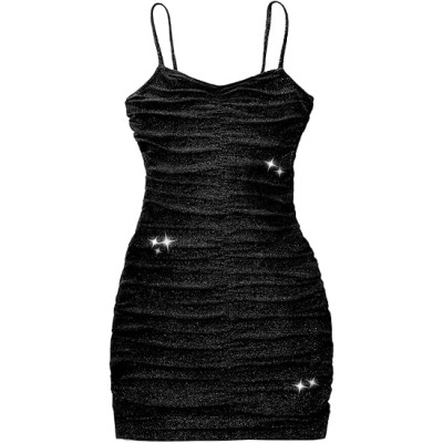 Women's Glitter Sequin Dress Spaghetti Strap V Neck Party Cocktail Sparkly Mini Dress Clubwear