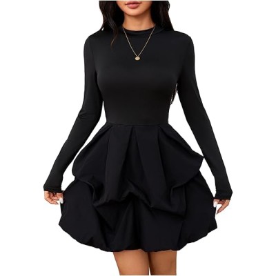 Women's Mock Neck Long Sleeve A Line Mini Dress Elegant Party Tank Bodycon Short Dresses