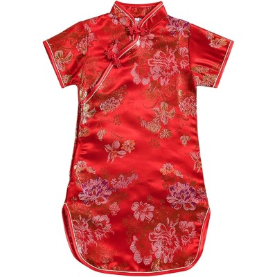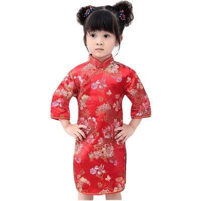 Girls Peony Qipao Chinese New Year Dress Chinese Traditional Clothes for Kids Toddler