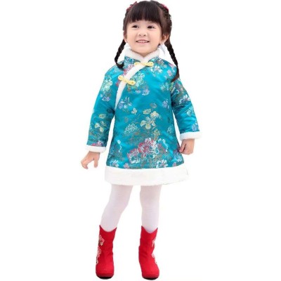 Baby Girls Dress Chinese Qipao Outfits Traditional Cheongsam Tang Quilted Dresses New Year Costumes Coat